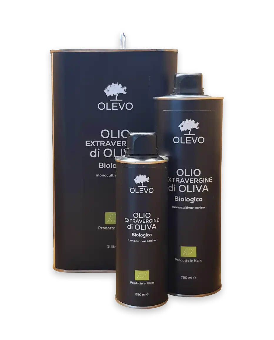 A smooth, rich, and slightly fruity extra virgin biological olive oil made exclusively from Canino olives, perfect for table or kitchen.